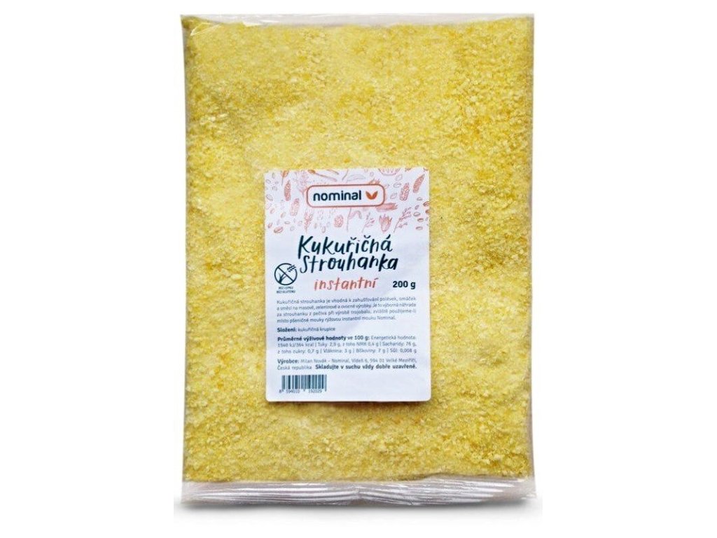 Zloženie: 100% kukuričná krupica Obsah lepku: Menej ako 20 mg na 1 kg výrobku. Skladovanie: V suchom sklade pri relatívnej vlhkosti do 75 % a teplote do 30 °C, vždy uzavreté. Výživové údaje / 100g: Energia 1540 kJ / 364 kcal * Tuky 2,9 g * NMK 0,4 g * Sacharidy 76 g * Cukry 0,7 g * Vláknina 3 g * Bielkoviny 6,9 g * Soľ <0,01 g Trvanlivosť: Pri dodržaní skladovacích podmienok 12 mesiacov. Balenie: 200 gDodatočné parametre